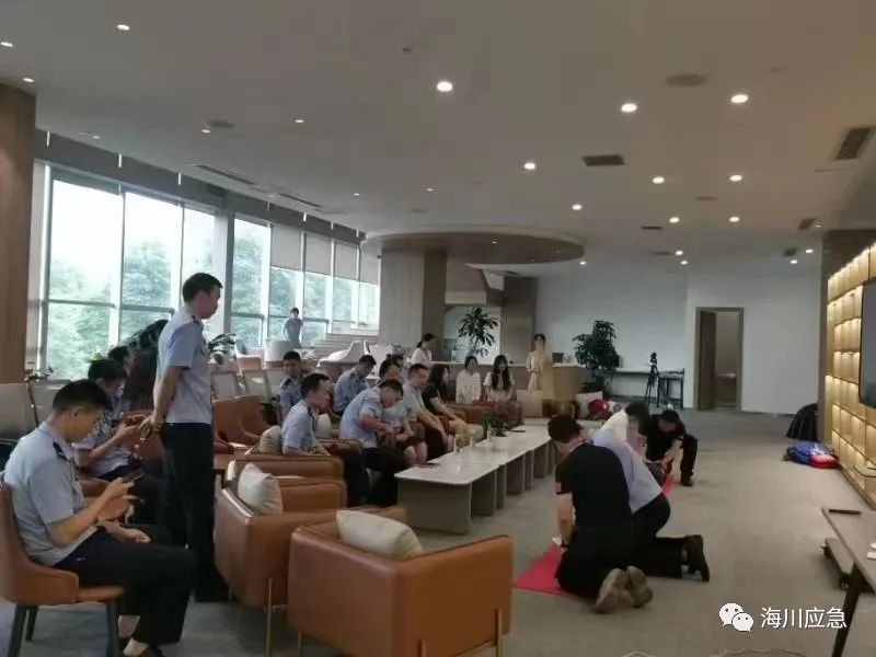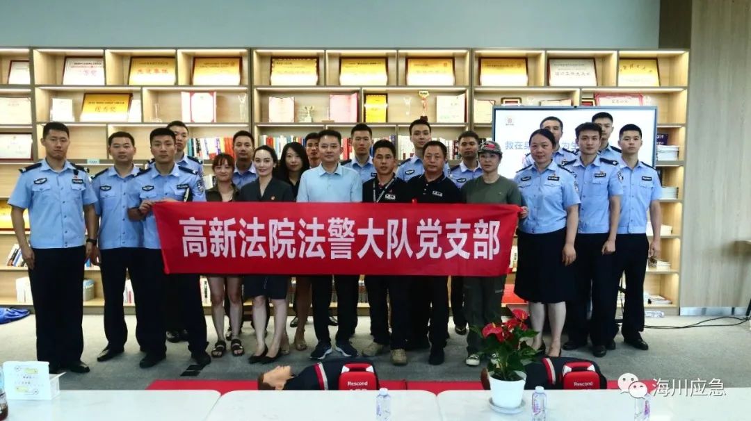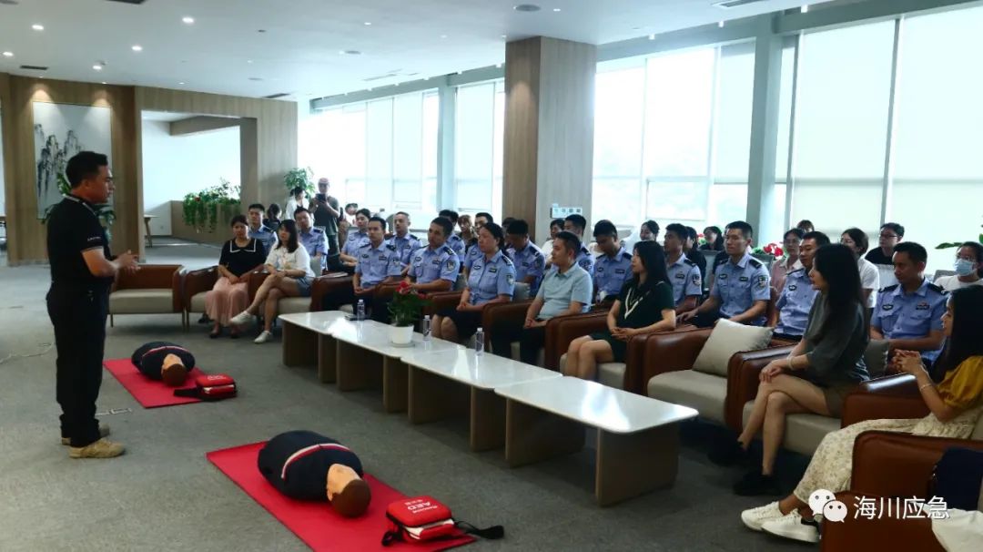 2023年7月6日下午,海川应急导师黄月宏和伍晓飞走进高新区人民法院,结合实际案例,为在场50余人普及了应急救护常识,并教授了气道阻塞识别与处理、心脏骤停的识别与处理等急救技能。