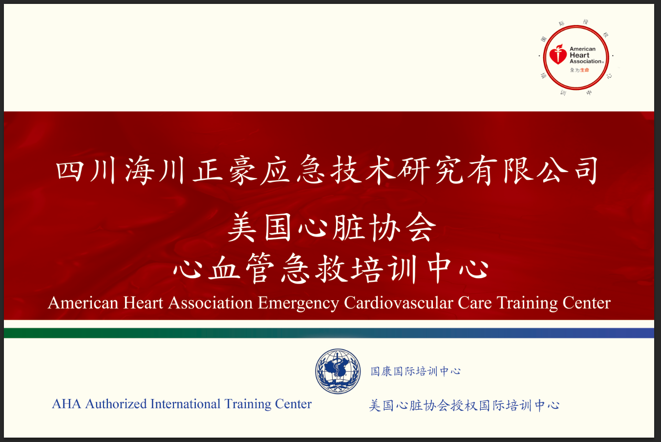 2021年10月,海川正豪经美国心脏协会授权成为美国心脏协会培训中心。美国心脏协会(American Heart Association)简称AHA,1924年成立于美国,是国际学术影响较大、历史悠久的心血管学术权威组织。同时,AHA是全球对公众急救培训最权威最标准化的机构,其颁发的急救证书在全球188个国家认可。AHA旨在推广CPR(心肺复苏)技术在专业医疗救护人员与公众的普及。Heartsaver课程适用于没有任何医疗背景的普通大众学习,适用范围广泛。