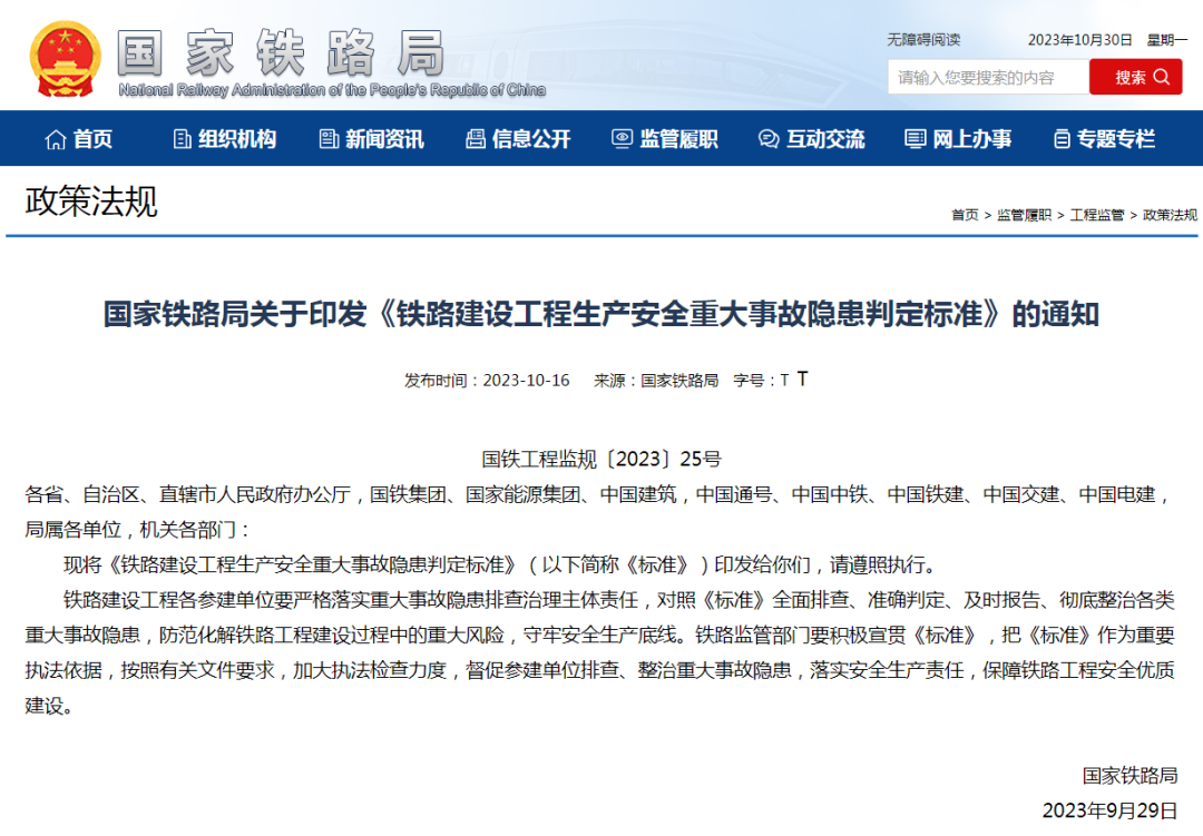 《铁路建设工程生产安全重大事故隐患判定标准》