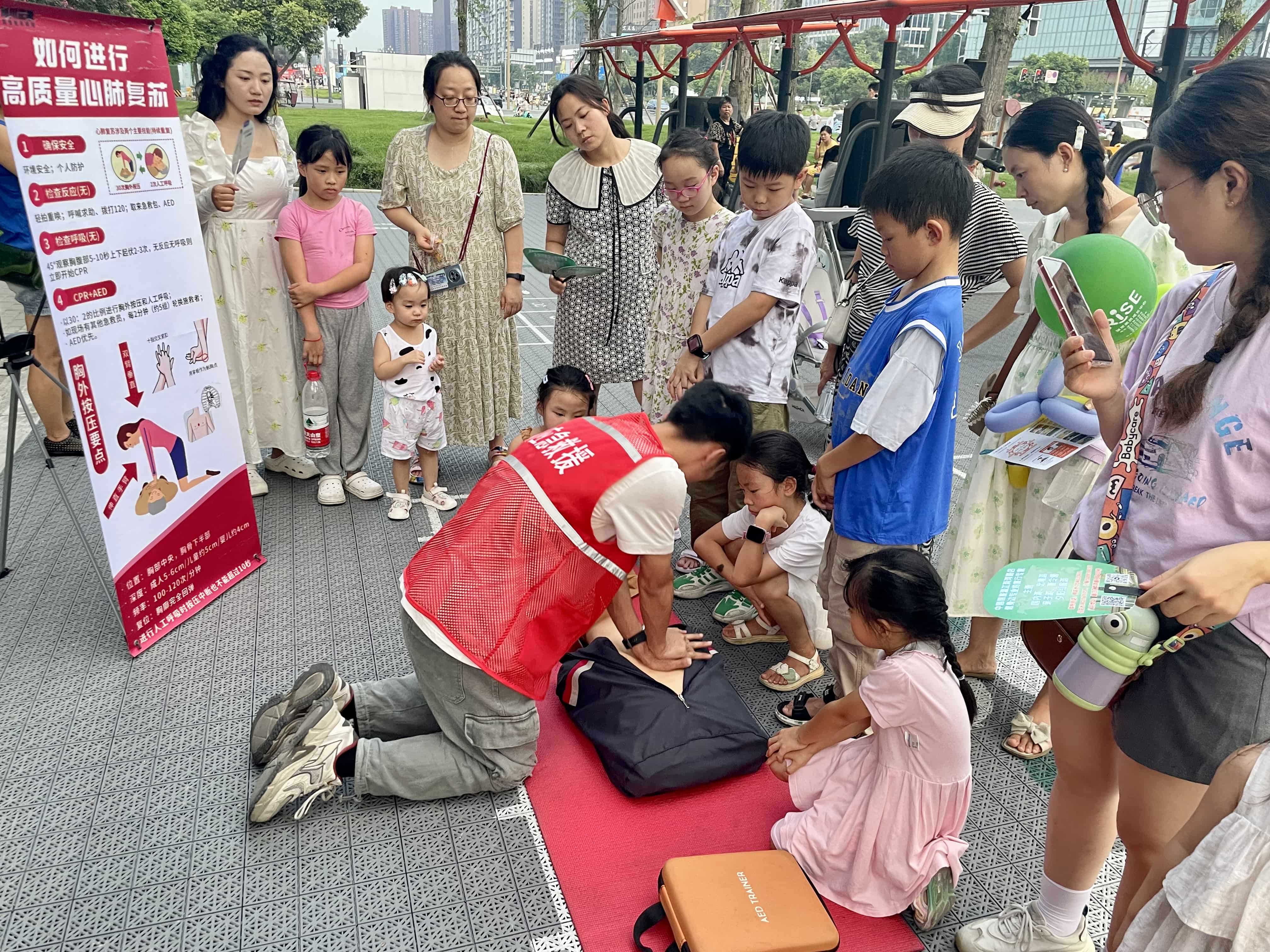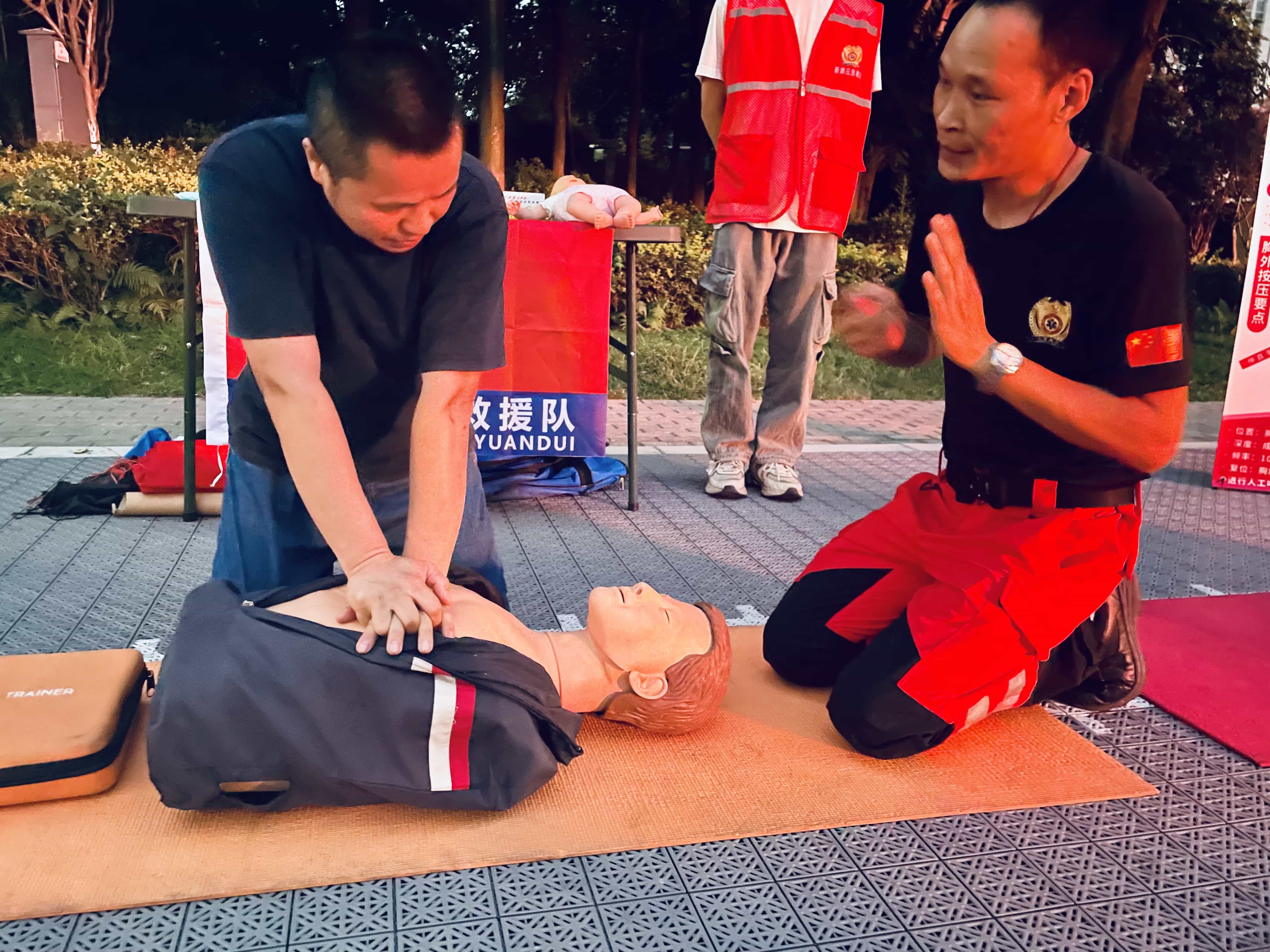 活动现场,温江区新狮救援队的队员们围绕如何做到准确、有效,高质量的实施心肺复苏等应急救援技能,为围观市民讲解应急救援的科学原理和实用技巧。并通过带来的模拟人道具和AED设备,指导热情参与的市民现场演练和体验实施应急救援的过程。
