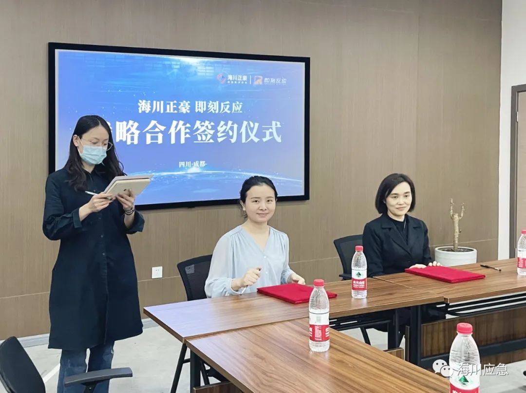 4月13日,四川海川正豪应急技术研究有限公司与即刻反应应急安全体验基地在即刻反应新都基地正式签署战略合作协议。海川正豪负责人王旻、李荣桥,即刻反应总经理周莉出席签约仪式。