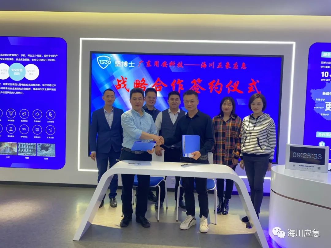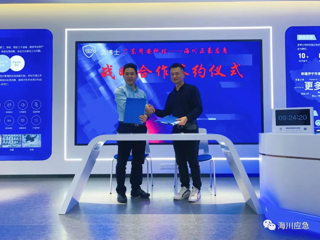 3月8日,四川海川正豪应急技术研究有限公司与广东用安科技有限公司在用安总部珠海市正式签署深度战略合作协议。海川正豪董事长黄月宏、用安科技董事长李水浪出席签约仪式。